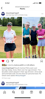 Kate won this match with a new low score of 78. She had a 41 on the front and 37 on the back. She was one under on the back going into 18, but made a double on it. She had one bogey on the front, plus one 8...other than that, she had all pars. She hit it really well. Anna was second with an 83, and Elizabeth had an 84. After the match, they had a swing lesson with Phillip Walker. Jack also won his age division with a 73. He finished birdie, birdie to tie his friend Maddock, then birdied hole one to win the play-off.
