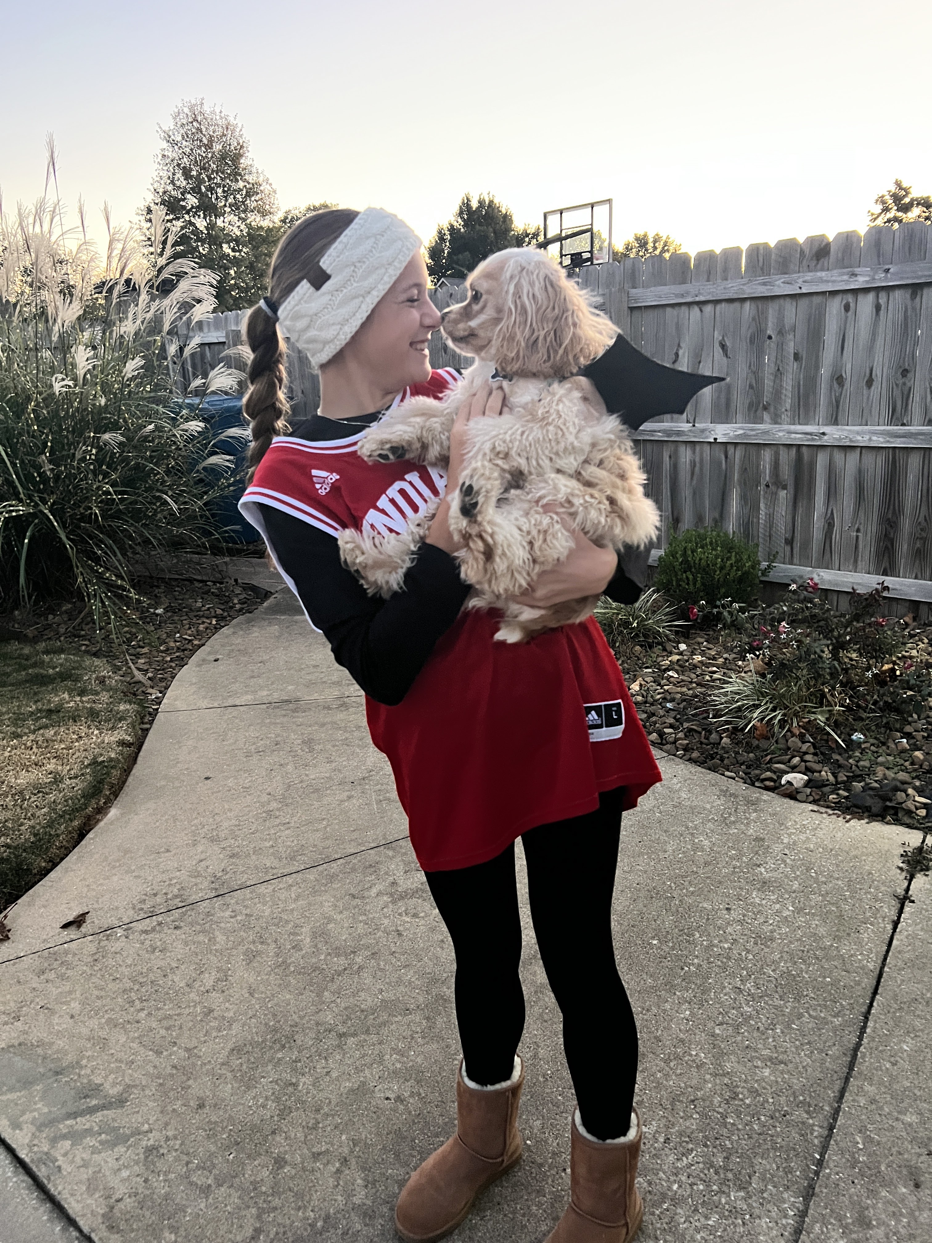 The girls went trick-or-treating with Miles and Trail Rush. They decided last minute to wear jerseys from Jack's closet. Jack went to Pinnacle with his friends. I passed out candy and John was out of town.