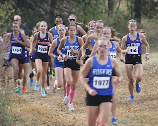 The girls ran the conference meet on their home course which they know so well and run on every day. It is a long course. Kate had been battling a cold for the last week and had not had as many miles due to her foot but she ran it in her vaporflys instead of spikes just so her foot had some extra support. Her foot did not hurt during the race but she did not have a good day. It was warm and wind gusts were 40 mph. None of the Rogers girls ran well except Lilly but the girls team did win for the first time since 2010. Anna was 9th and All-Conference (20:02.78). Elizabeth was 11th (20:08.36) and Kate was 14th (20:21.31).
